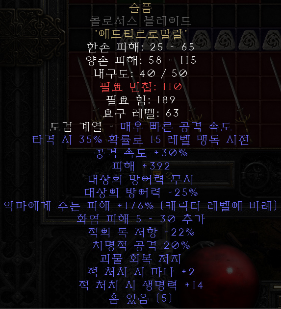 똑같은 4소켓 검이지만 필요 민첩이 쓸데없이 너무 높다.