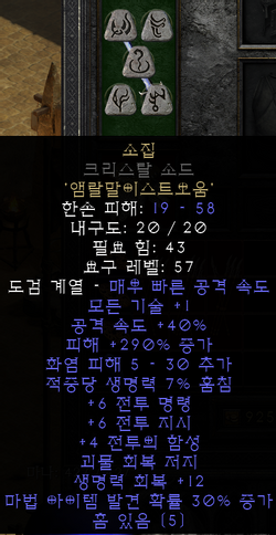 : 검의 데미지가 아닌 옵션을 보고 사용하는 검이기 때문에 최대한 필요 힘이 적은 무기를 구하는 것이 좋다.