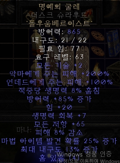 [디아블로2] 노말-익셉셔널-엘리트 방어구 옵션, 수치, 소켓 최대 확인 (일반/노멀 아이템) 검색해