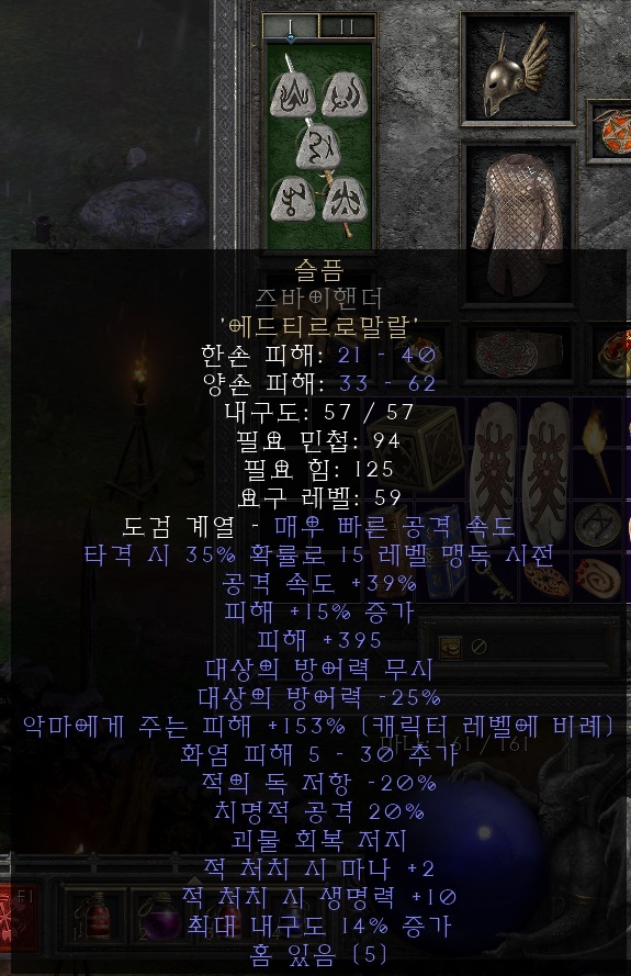[디아블로2] 노말-익셉셔널-엘리트 무기 옵션, 수치, 소켓 최대 확인 (일반/노멀 아이템) 검색해서