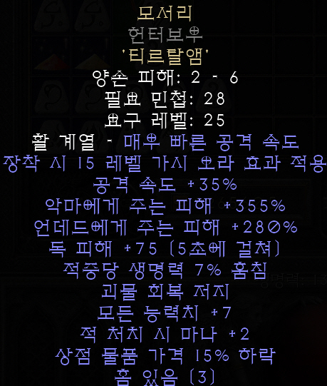 장착시 15레벨의 쏜즈 오라의 효과 적용